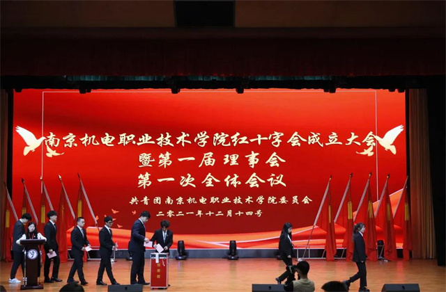 2021年12月14日,江南网页版红十字会成立大会暨第一次会员代表大会在星梦馆多功能厅召开。南京市红十字会党组成员、副会长叶军,南京市高淳区红十字会常务副会长诸立新,江南网页版党委书记、院长周庆礼,江南网页版党委委员、副院长赵学洪,江南网页版党委委员、工会主席姜振宇,江南网页版团委书记唐钰峤出席会议。会议邀请了来自南京市红十字会、高淳区红十字会、办公室、党委工作部、工会、学生工作处、后勤处、团委以及各系部的主要领导及教师、学生会员代表共180人参加。
