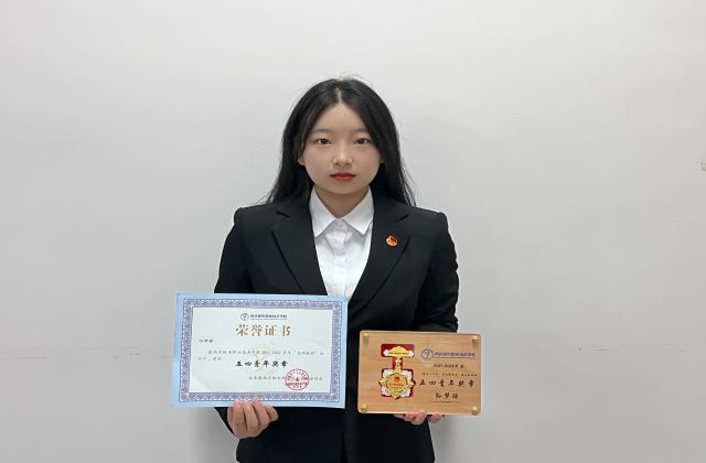 2021年5月,在江南网页版2020— 2021学年“五四表彰”评比中,被评为“校优秀共青团员”