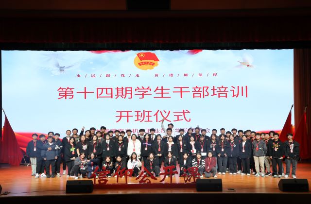 为进一步提高我校学生干部队伍整体素质,锻炼和塑造一支具有良好综合素质能力的学生干部队伍,充分发挥学生干部在大学生思想政治教育中的桥梁和纽带作用,提高学生干部的政治素质、理论水平和业务能力,培养广大青年坚定不移听党话、跟党走,怀抱梦想又脚踏实地,敢想敢为又善作善成,立志做有理想、敢担当、能吃苦、肯奋斗的新时代好青年,让青春在全面建设社会主义现代化国家的火热实践中绽放绚丽之花。2022年10月25日,由校团委主办的第十四期学生干部培训班开班仪式在青春剧场举行。