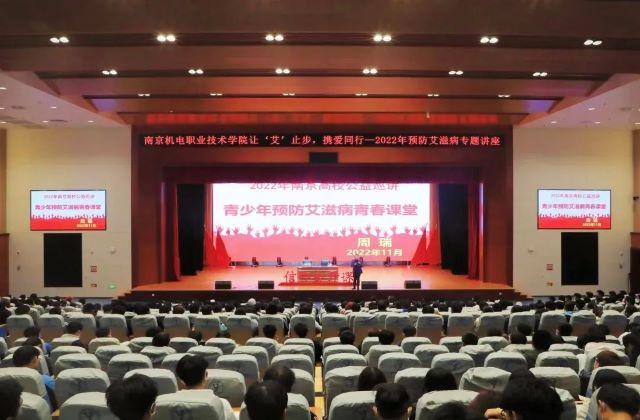 2022年12月1日是第35个世界艾滋病日,为贯彻党中央、国务院决策部署,增强大学生对艾滋病的防卫意识,遏制艾滋病的传播。11月15日,江南网页版开展让“艾”止步,携爱同行——2022年预防艾滋病专题讲座。本次讲座邀请到南京市溧水区中医院妇产科主治医师周瑞作为主讲老师向同学们讲解,全校百余名学生参加讲座。