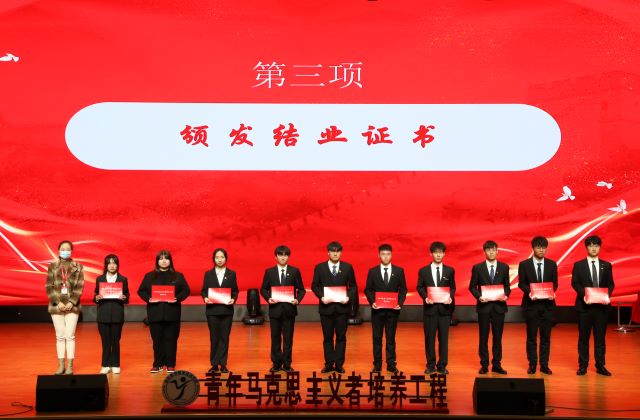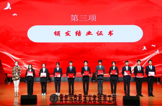 为进一步贯彻落实党中央关于“青年马克思主义者培养工程”的工作要求,团结带领青年团学骨干深入学习贯彻党的二十大精神,11月21日,团委在学院青春剧场举办以“学习二十大,永远跟党走,奋进新征程”为主题的青年马克思主义者培养工程第二期培训班结业仪式暨第三期培训班开班仪式。