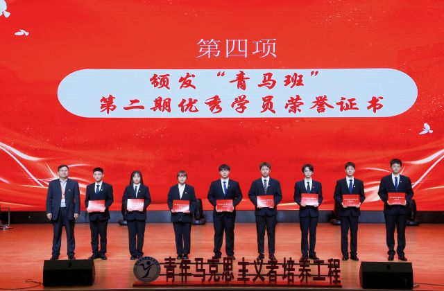 纪委副书记、党委工作部部长周启国为第二期“青马班”优秀学员代表颁发荣誉证书。
