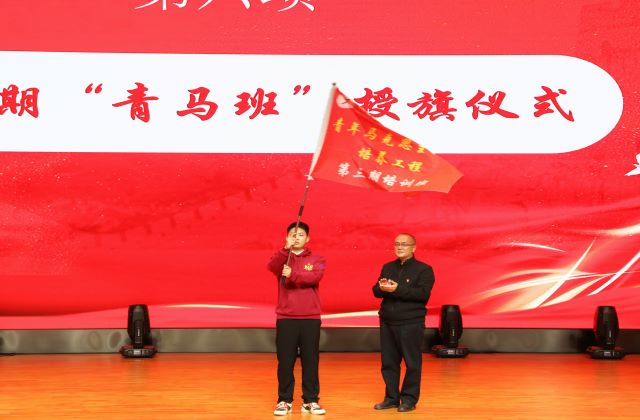 新时代中国青年的使命,就是坚持中国共产党领导,同人民一道,为实现全面建成社会主义现代化强国的奋斗目标、实现中华民族伟大复兴的中国梦而奋斗。学院党委委员、副院长赵学洪为第三期“青马班”授旗。