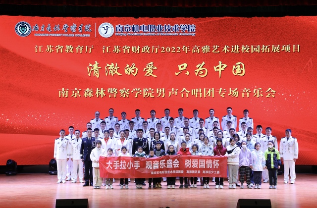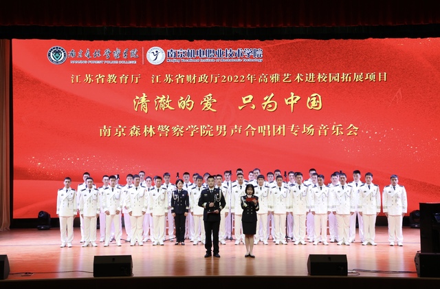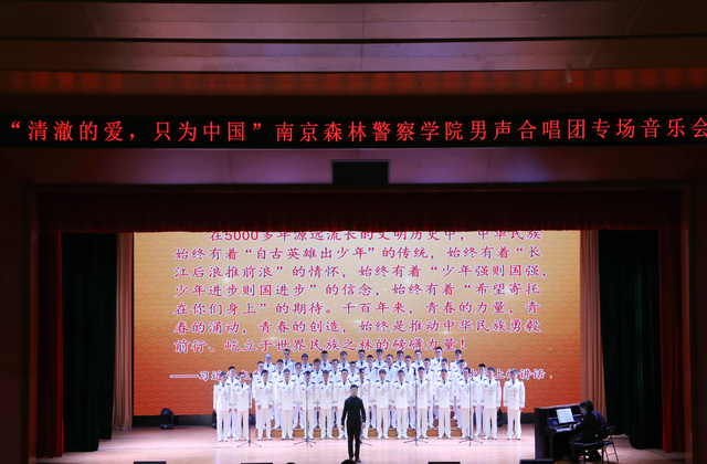 飞扬的歌声,赞颂祖国盛世;熟悉的旋律,演绎时代华章。江苏省教育厅、江苏省财政厅高雅艺术进校园拓展项目“清澈的爱,只为中国”南京森林警察学院合唱团专场音乐会于2023年2月25日在我校青春剧场成功举办。高淳团区委、高淳区少工委、江南网页版团委书记唐钰峤、南京森林警察学院院团委书记林安薇、南师大音乐学院老师凌今朝出席本场音乐会。南京森林警察学院治安学2104吴卓忱和情报2103欧阳周璇担任本场音乐会主持人。