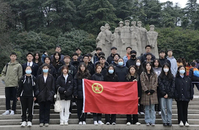 经过一个半小时的车程,到达了雨花台烈士陵园,在庄严的革命烈士纪念碑前,全体同学肃立,面对纪念碑鞠躬致敬、垂首默哀,向烈士敬献鲜花,表达对先烈的怀念之情。烈士就义群雕下,同学们纷纷表示:将铭记烈士功勋、秉承烈士遗志、弘扬烈士精神,不忘初心、牢记使命。面对先烈,我们不只是缅怀,更多的是继承,清明雨季,缅怀不减,立志更坚。