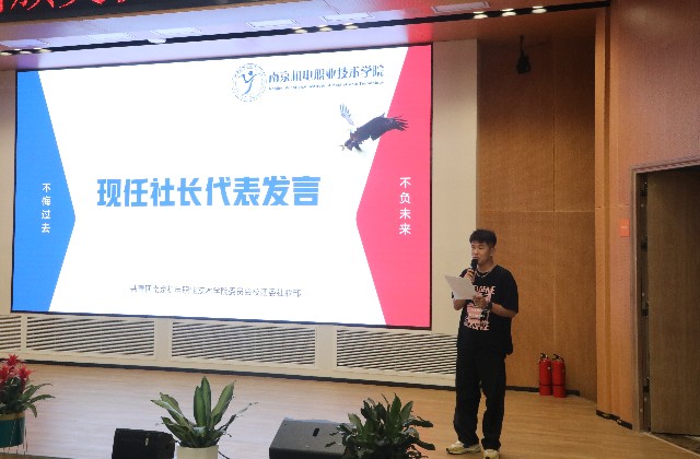 首先,张老师对老一届社长的工作及对学校文化建设的贡献给予了表扬与肯定。同时强调新一届社团负责人要注重全面发展,迸发出蓬勃的力量,努力建设服务型、创新型的学生社团。