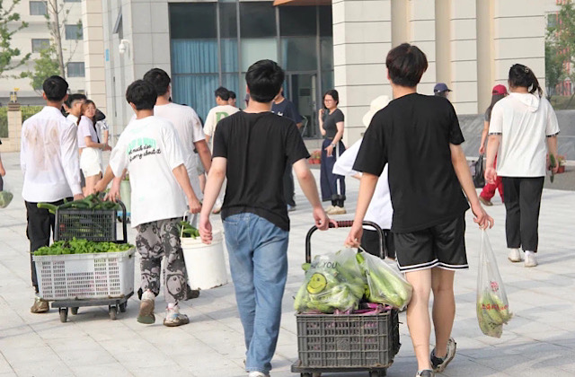 劳动教育是“德、智、体、美、劳”一体化教育的重要方法。同学们跟随队伍抵达实践基地,在领取工具后,领队老师向同学们分配采摘瓜果蔬菜等任务。