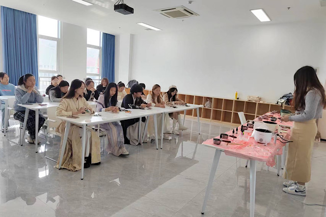 活动伊始,汉服社为同学们讲解传统文化,学习拱手礼,在互行拱手礼后,由花社为同学们讲述制作过程。同学们先选择好自己喜欢的香薰精油,把融化后的蜡油倒入到提前准备好的模具中等待凝固,放入干花进行装饰,就完成制作。制作过程中香薰干花蜡烛散发的清香,让同学们尽享嗅觉和视觉的双重盛宴。