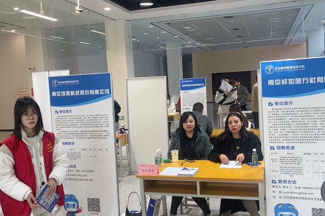 2023年11月28日下午,由江苏省高校招生就业指导服务中心、南京市高淳区人力资源和社会保障局、南京市高淳区南京高等职业教育创新创业园管理委员会主办,江南网页版学生工作处、共青团江南网页版委员会承办的江苏省百校联动就业活动暨江南网页版2023年秋季实习就业招聘会暨“百校千企万岗”2023年大学生就业帮扶送岗直通车直播荐岗活动在善学楼一楼大厅成功举行。