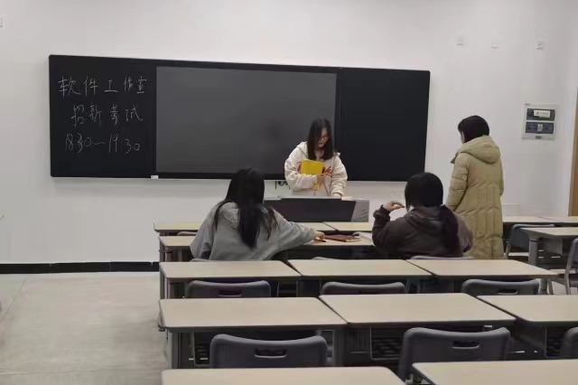 同学们非常热情,并且积极备考,在为进入工作室进行最后的冲刺。在考试中,同学们遵守秩序,认真答题,在经过两个小时的奋笔疾书后,同学们安静地等待着自己的成绩,期待得到自己心中最想的结果。最终有六位同学成功通过考试。接下来他们将会有一个月的试用阶段,通过试用期,他们将正式成为软件工作室的成员。