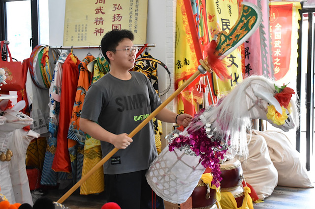 实践团队前往高淳区武术协会,传承人汤红兵详细地向团队成员介绍了马灯的悠久历史、制作工艺以及演练要领等。为进一步了解东坝大马灯背后的故事,实践团一行人前往东坝大马灯的发源地——汤家村。在传承人汤老师的讲解指导下,团队成员参观了东坝大马灯制作过程,感受着非遗文化的深厚底蕴和独特魅力。团队组长马天鹰表示:“非遗文化不仅仅是历史的见证,更是活生生的生活形态和文化传统。只有亲身去体验、去感受,才能真正理解和珍视这些宝贵的文化遗产。”