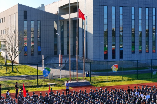 清晨,阳光温柔地洒在校园,全体学员在教官的带领下整齐列队。随着升旗仪式正式开始,全场肃静,向在抗日战争中英勇牺牲的先烈们致以最崇高的敬意。全体师生齐声高唱国歌,用嘹亮的歌声表达着对祖国的热爱。