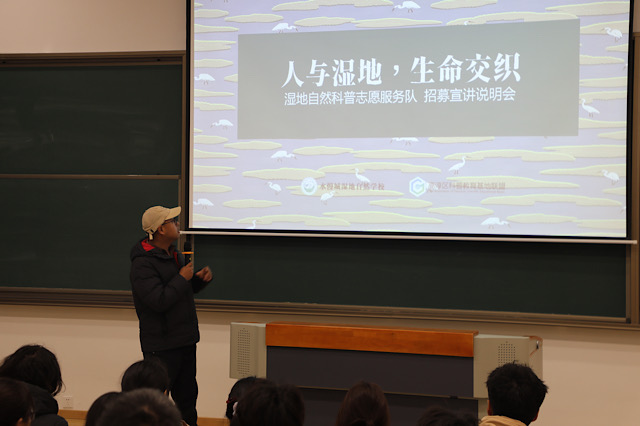 2 月 26 日,校团委与固城湖水慢城湿地自然学校联合开展“人与湿地,生命交织” 主题湿地保护与文化推广宣讲会,旨在让大众深入了解湿地生态系统,传播湿地生态文化,唤起人们对湿地保护的重视。活动内容丰富多元,在水慢城将举办不定期的展览展示,精心布置的展览将通过实物、图片、多媒体等形式,全方位展示湿地的生物多样性、生态功能以及人文价值,让参与者仿佛置身湿地,深度领略湿地魅力。