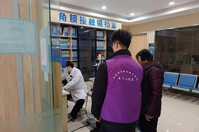电子工程系携手机械工程系的同学们走进南京爱尔古柏医院,成为了患者们的暖心引路人。在医院里,志愿者们时刻留意着那些年长患者或初次就诊时面露迷茫的人们。他们主动迎上前,从耐心询问就诊需求,到细致协助选择科室、支付费用,每一个环节都讲解得极为详尽,让患者能够安心、顺利地开启就医流程。在挂号大厅,志愿者们迅速分散到自助挂号机旁,手把手地帮助患者完成挂号操作,化解了他们面对机器时的无助与困惑 。他们的热情与耐心,如同春日暖阳,温暖了每一位患者的心。