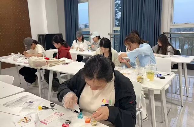 完成掐丝后,就进入填色环节。这可是最需要耐心和创意的部分。同学们挑选着心仪的釉料颜色,慢慢填充进铜丝轮廓里。色彩相互交融,绚丽又美妙。有的同学用清新的色调描绘出宁静的自然风光,有的则用大胆热烈的色彩展现出活力满满的现代场景。大家沉浸在创作中,感受着非遗技艺的独特魅力。