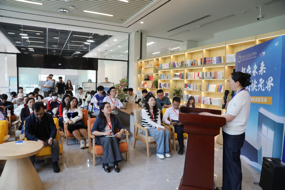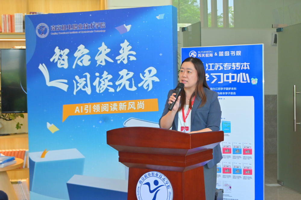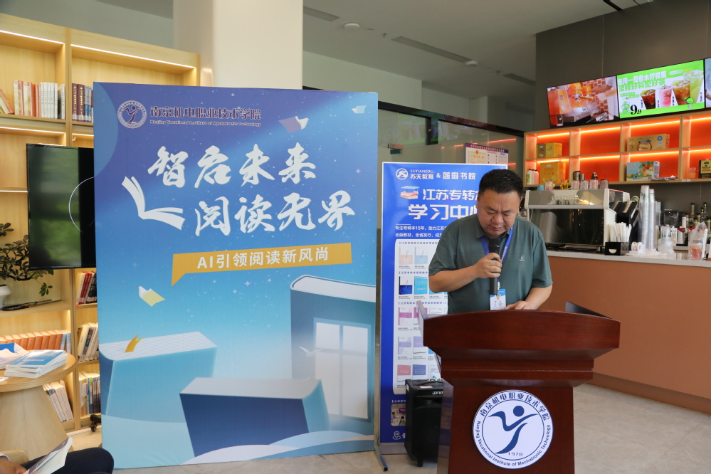 4月23日,在第30个世界读书日到来之际,我校以“智启未来,阅读无界—AI引领阅读新风尚”为主题的2025年读书节在善学楼一楼蓝岛书院拉开序幕!苏天教育董事长成东中;学校党委委员、纪委书记、工会主席姜振宇;学生工作处处长张宝中;团委书记孙晓燕;各分工会教职工、各系部师生代表齐聚一堂,共同见证这场融合人文精神与科技创新的阅读盛会。本次活动由图书馆王君老师主持。