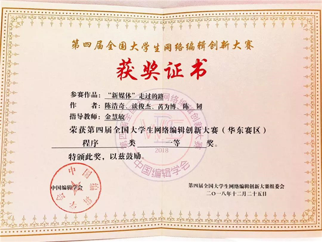 2018-2019学年第四届全国大学生网络编辑创新大赛华东赛区一等奖
