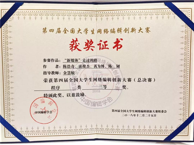 2018-2019学年第四届全国大学生网络编辑创新大赛全国赛区三等奖