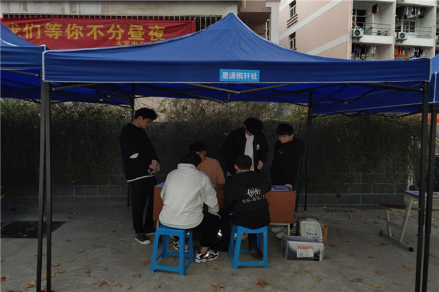 经过了几个小时的招新,我们的活动也逐渐进入了尾声,但是在社团招新的地点,依旧有人在激烈的对弈,在这时,时间已变的不重要。