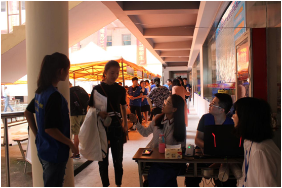 在此次迎新工作中,信息系主要分三个组展开新生接待工作。分别是引导组、班级接待组、后勤服务组。引导组负责引导新生前往报到地点,协助办理扫码报到手续,在每位志愿者的辛勤服务下,报到处工作井然有序进行着。班级接待组在本次迎新工作中最为忙碌,班主任在志愿者的协助下确认每位学生入学资格、核对学生缴费情况、为新生分配宿舍、为学生发放餐卡等。新生办理完手续后在后勤组的引导下顺利入住宿舍,在引路途中主动帮着拎行李。一路谈笑风生,在入学第一天就感受到了家的温暖。