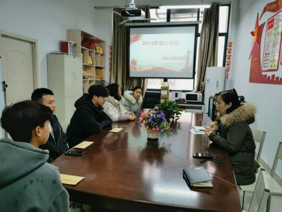 为了贯彻落实学院党委工作部绿色暖心行动的要求,信息工程系党支部于2020年1月7日上午9点在系部会议室开展了“2019年助学助困贫困生座谈会”活动。参加此次活动的有学院党委工作部周启国主任、信息系王玮主任、胡枫书记、辅导员及贫困生。