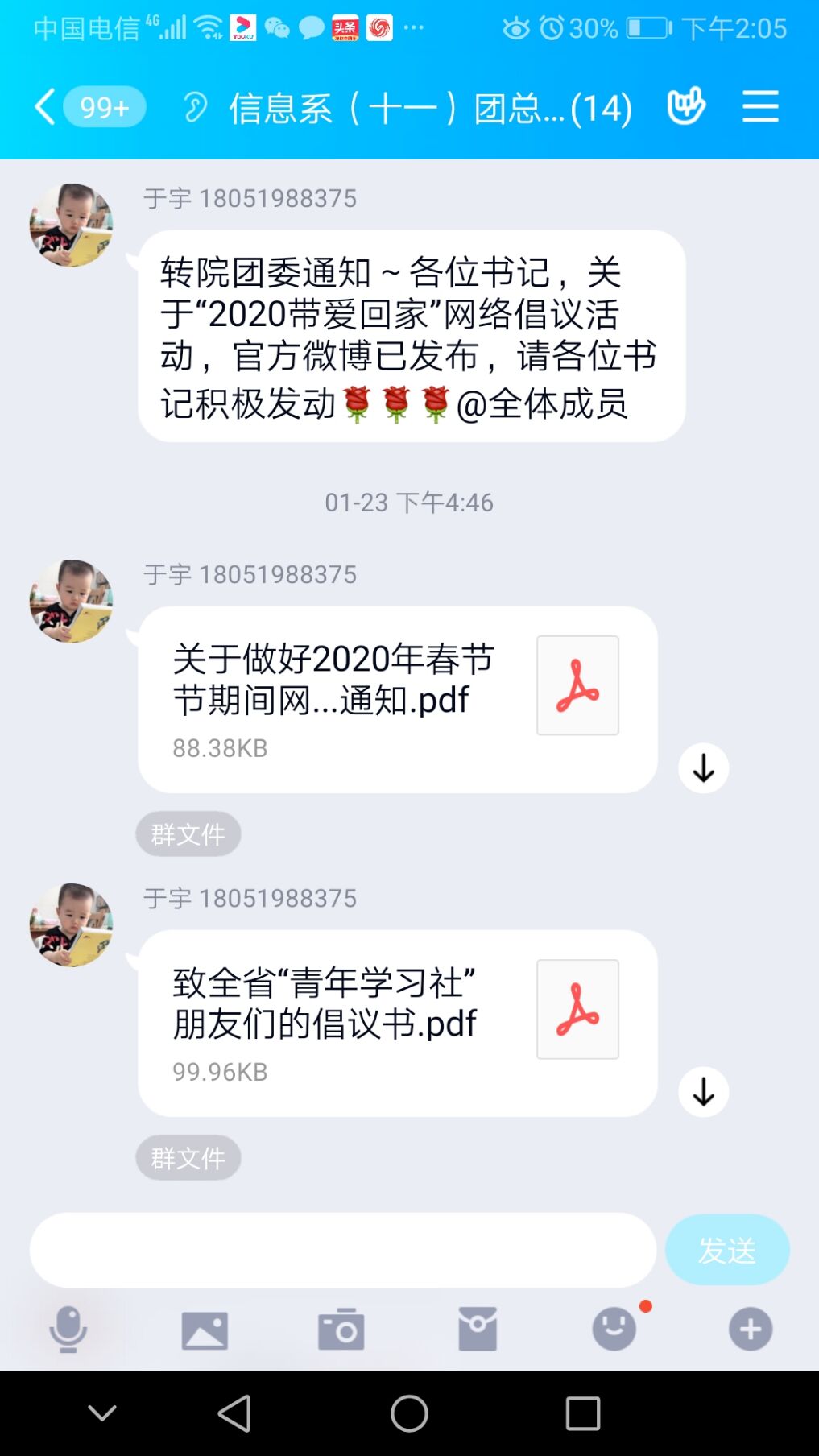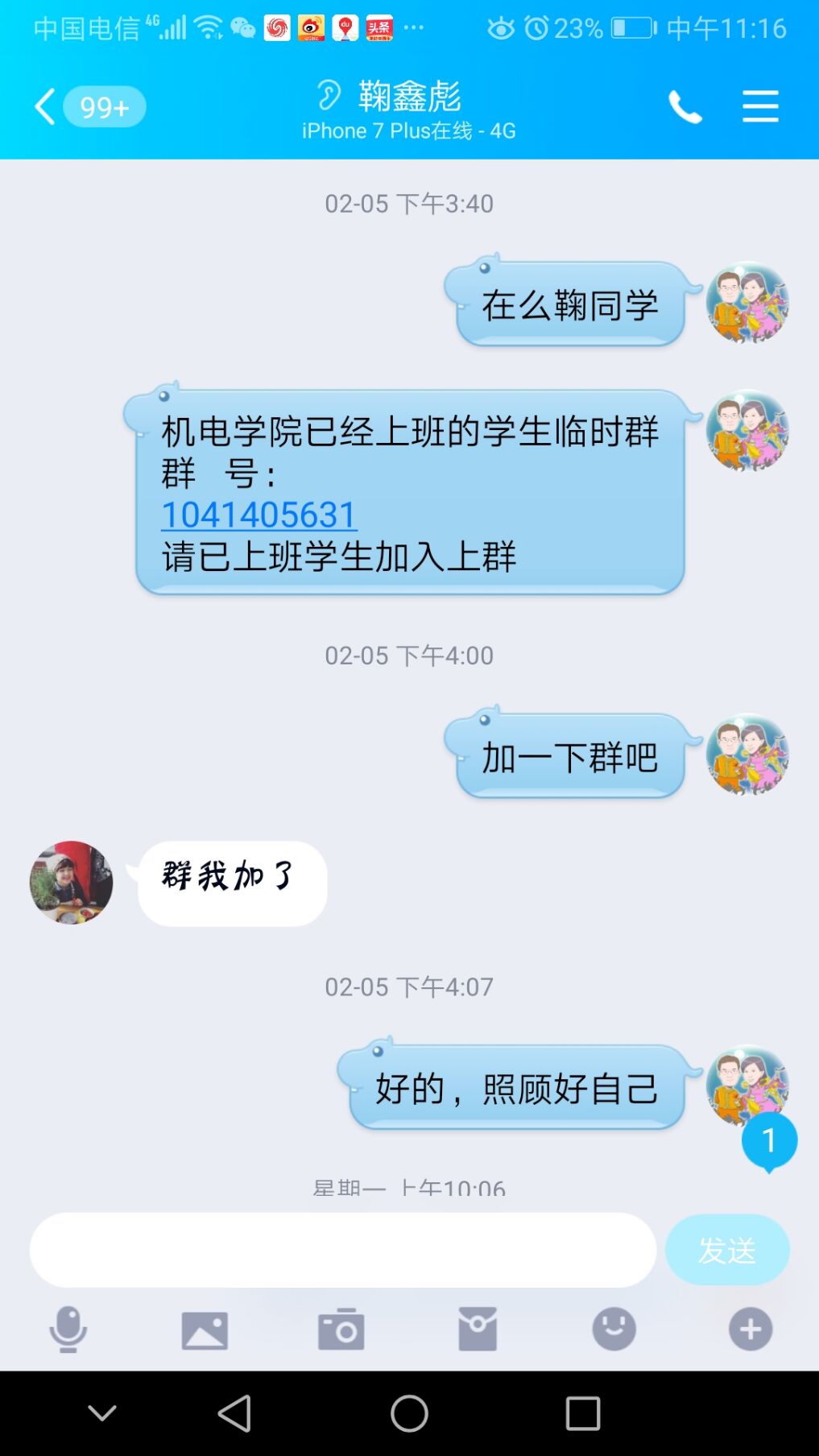 系部学工团队的每一位成员均坚守工作一线,切实做到“手机不离身”,通过电话、短信、QQ等方式密切联系前期摸排出的“重点关注对象”,其中包括仍滞留在疫区的学生、目前仍工作在防疫特殊岗位上的学生以及有家人确诊正接受医学隔离的同学等等。一声声问候,一句句叮咛早已是师生间每日“点对点”联系的惯例内容。“好像身后有了关心着我的老师们,疫情好像也变得没有那么可怕。”年前因工作滞留在武汉的鞠同学经常提到辅导员王林林老师。