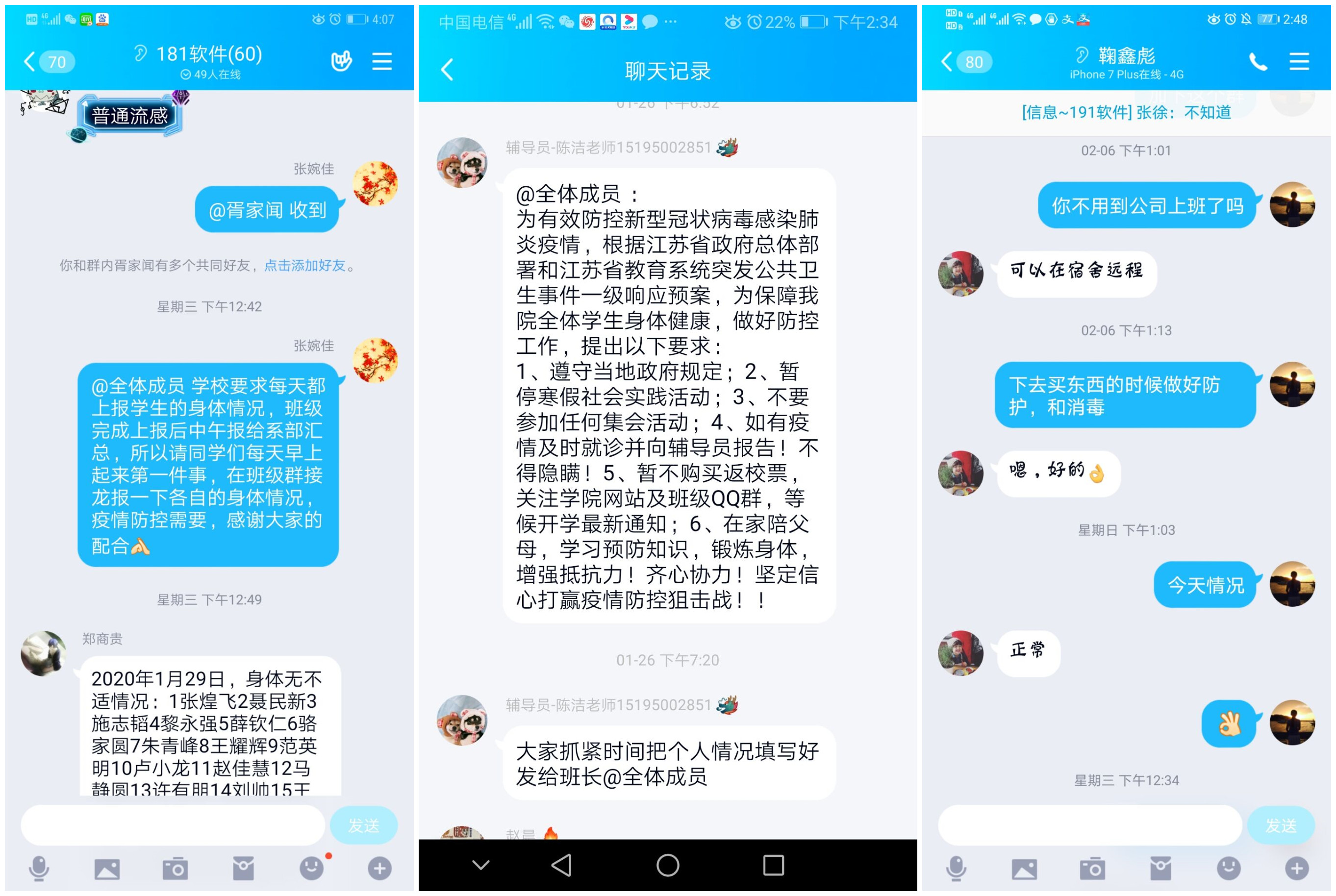 疫情开始以后,辅导员老师每天查看包括QQ个性签名、说说、日志、微信朋友圈、微博等1000+的学生动态,及时关注学生的心理变化和网络舆论,晓之以理,动之以情,动员同学们遵守规定,科学防疫。