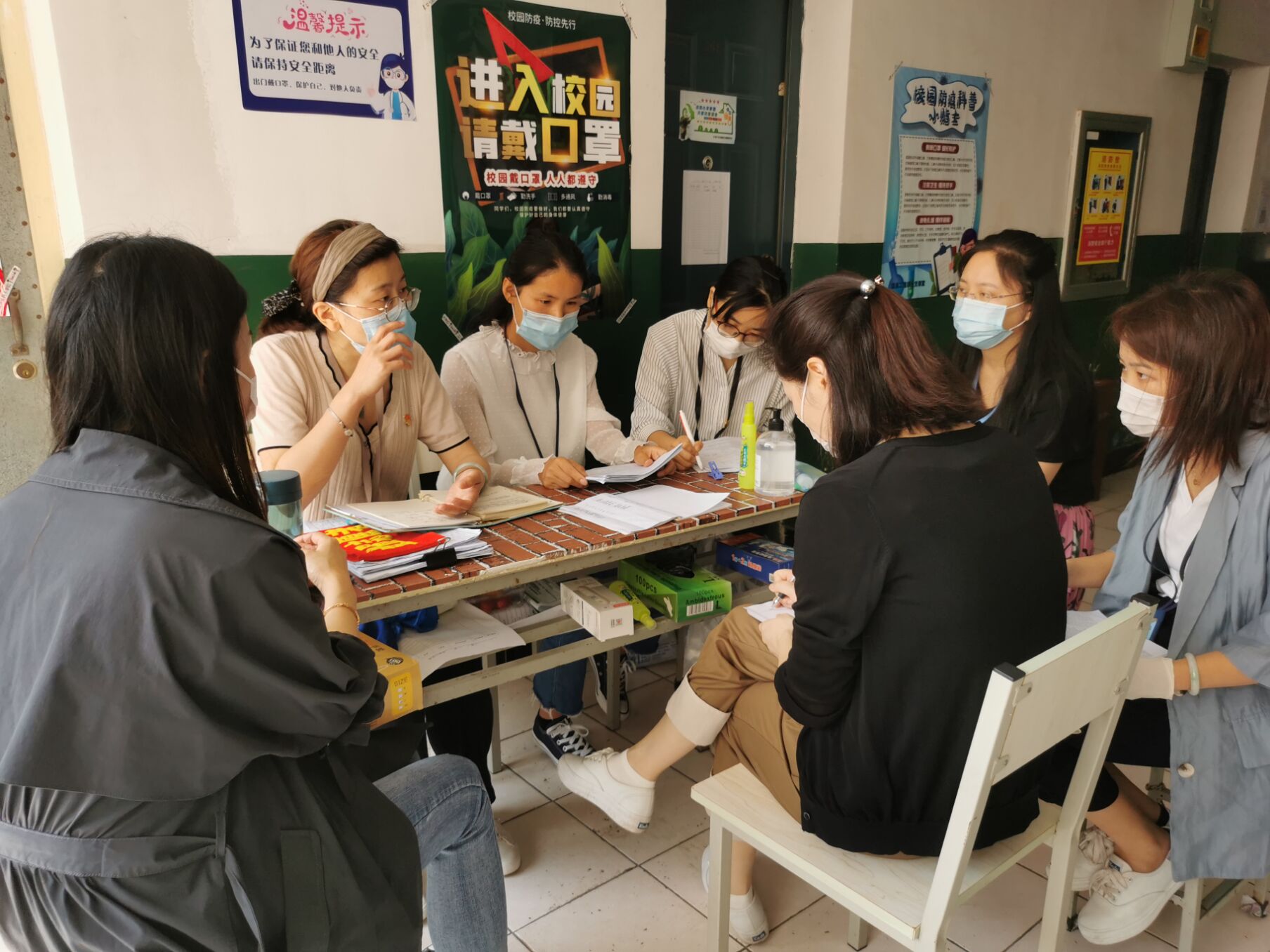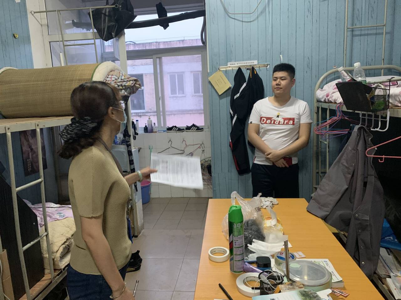 穿过学生公寓门口的测温门,值班老师早已在宿舍门口等候了。