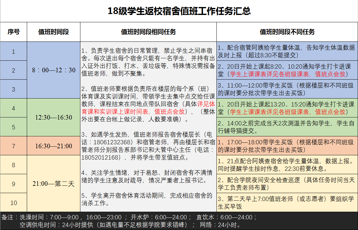 如约而至,一切真好。为确保服务工作的准确落实,信息工程系党支部制定了详细的服务值班表,分三班轮流完成对学生的管理、服务,包括学生测温、上课提醒、宿舍消杀等工作。