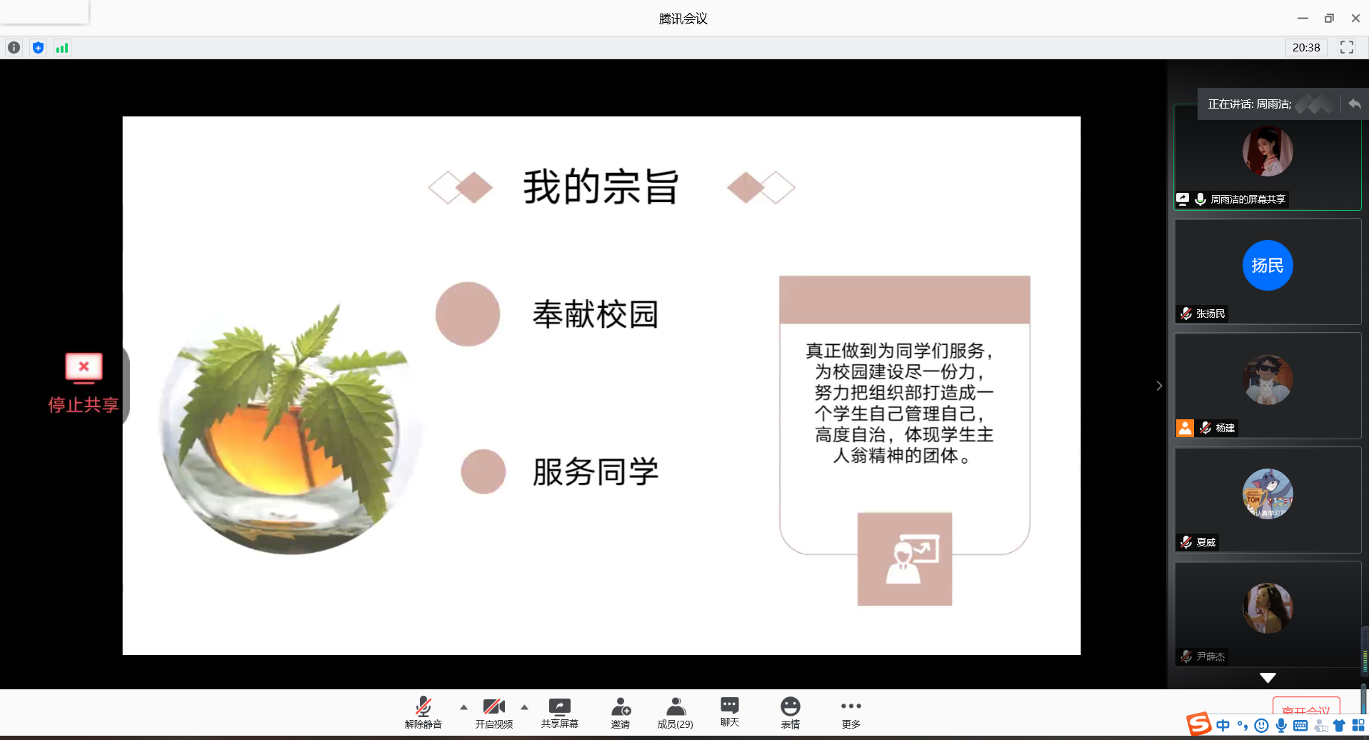 为了让学生会有足够高素质的后备力量,能更有效地开展学生会工作,我系在2020年6月27日上午十点半于线上开展了系学生会换届选举大会,目的是为了选拔出主席团以及各个部门的部长及副部长。出席本次会议的老师有系学生会指导老师俞宝莹老师、系部书记胡枫老师和系团总支书记于宇老师,全体学生会成员参加了本次大会。