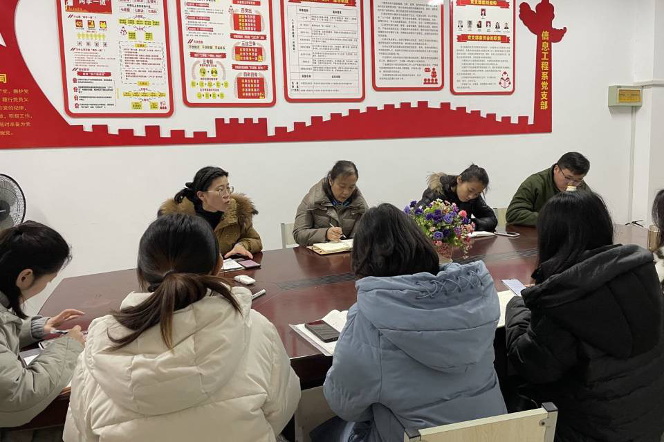 王玮主任首先对《紧急通知》的内容进行了解读,王主任表示,为确保全院师生健康和财产安全,学院积极应对此次灾害性天气。王主任提出,信息系全体教职工,积极主动承担学院分配的扫雪任务,做好学院交办的各项应急工作。胡枫书记在会上表示,各位党员教师和入党积极分子教师,要发挥出党员的先锋带头作用,带头落实学院党委各项工作安排,承担组织分配的工作任务,充分发挥表率作用。