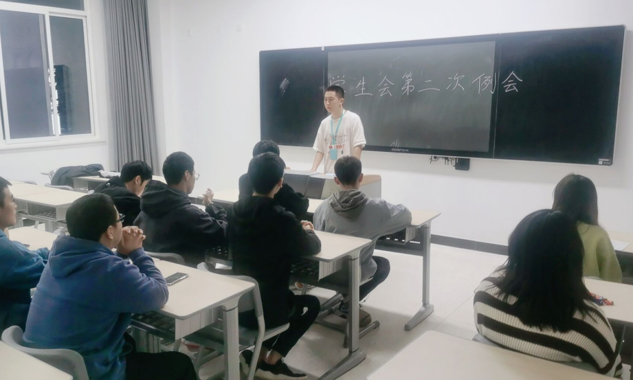 接着,学生会主席检查早餐是否带入教学楼查、早课查课、十一月中旬的拔河比赛等事项做了详细的说明。通过本次例会,大家明确了本月工作内容,大家会尽心尽力全力以赴。