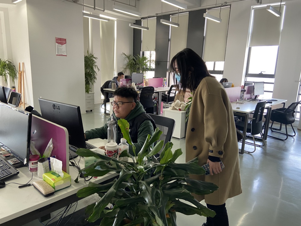 沈经理介绍了公司情况与我系学生工作情况,并对我系学生的工作能力、工作态度给予了肯定。随后吴书记和辅导员及专业老师们逐一与学生沟通,了解了学生在企业的工作、生活情况,同时鼓励大家保持脚踏实地工作,充分发挥个人专业技能和创新能力,出色完成每项工作任务。