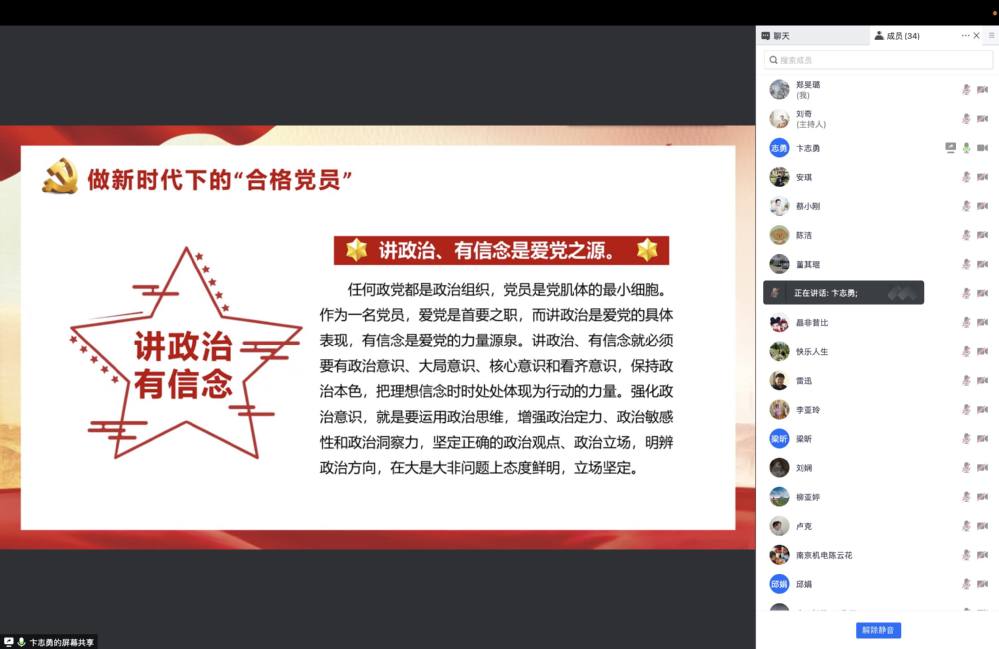 为喜迎党的二十大,引导全体教职工增强“四个意识”、坚定“四个自信”、做到“两个维护”,对“国之大者”领悟到位。4月19日下午,信息工程系党支部依托腾讯会议平台,开展了线上政治理论学习,本次学习的主题是 “喜迎党的二十大,永远跟党走”。支部书记吴伟萍主持会议,支部全体党员及普通教职工参加学习。