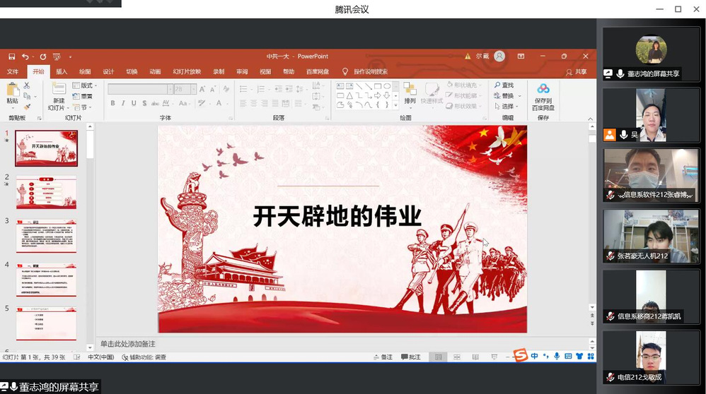 5月12日晚19点,江南网页版信息工程系党支部组织21级先进团员开展线上学习,学习内容为中共一大会议精神,我院思政中心董志鸿老师为主讲老师。