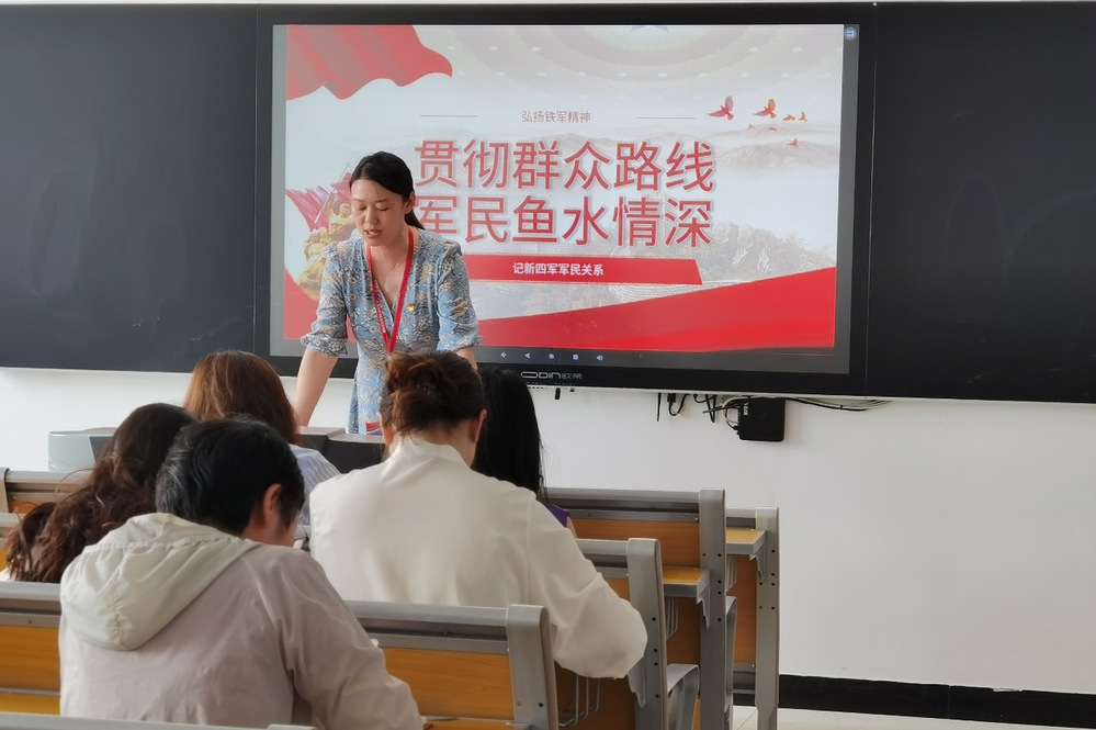 杨老师从新四军的群众路线概述、新四军群众路线的必要性、新四军群众路线的实践三个方面讲述广大新四军指战员与当地群众鱼水情深、同甘共苦,军民间建立了坚如磐石的情谊。