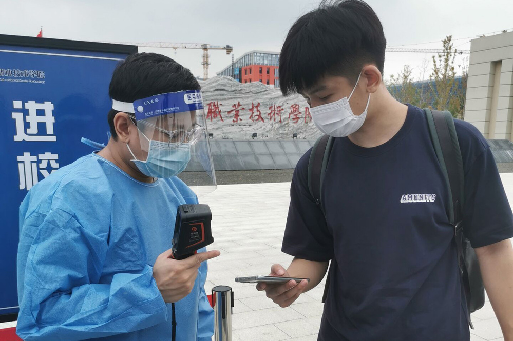 返校学生按照预先制定的错峰安排,陆续抵达学校门口。报道现场,学生们佩戴口罩,在志愿者指引下,完成查验48小时内核酸检测阴性证明、健康码核验、体温检测等程序有序进入校园。整个流程有条不紊、井然有序。