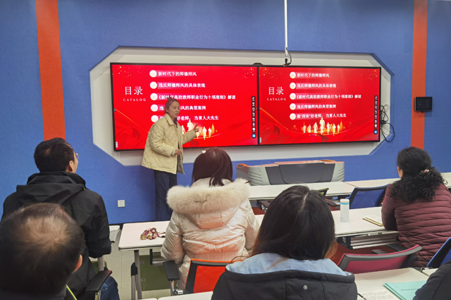 2月28日下午,信息工程系党支部在博学楼410室开展“师德师风警示教育”专题党课,本次党课由党支部纪律委员刘娴同志主讲,党支部全体教职工参加。
