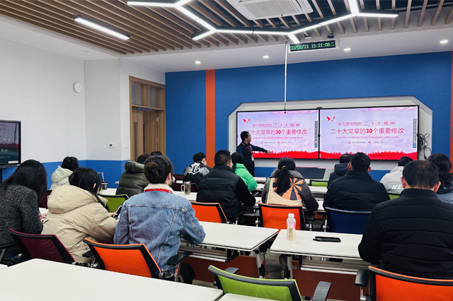 2月21日下午,信息工程系党支部在博学楼410室开展了“学习新党章”的专题党课,由卞志勇同志主讲,带领大家认真学习贯彻2022新修订《中国共产党章程》,信息工程系全体教职工参会学习。