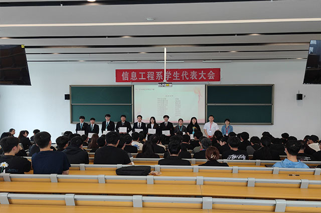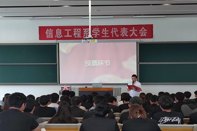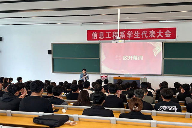 2023年4月18日下午1点,江南网页版信息工程系第四届学生代表大会在善学楼103顺利召开。信息工程系党支部书记胡枫、党支部组织委员兼团总支书记俞宝莹、党支部青年委员兼学生会指导老师郝麒、学工处老师顾窗林、全体辅导员老师及118名学生代表出席了本次大会。大会由学生会指导老师郝麒主持。