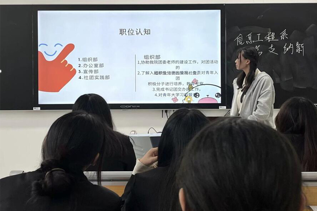 翻开人生新篇章,迎接绚丽新体验。为进一步加强我系团总支干部队伍建设,选拔出一批能担重任、全心全意为同学服务的优秀学生干部,更好地促进系团总支的发展。2023922日中午12点,信息工程系团总支在博学楼306开展了面向全系23级大一新生的招新活动。