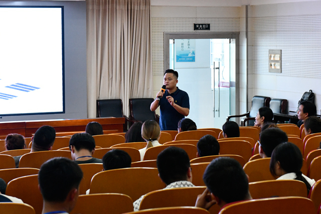 紧接着,我校蓝岛创客空间主任、卫星通信与导航专业负责人王国珍讲授了专业第一课。王主任从专业概况、培养目标、课程介绍、就业岗位、实训基地、卫星项目培训、卫星工程团队实践七个方面展开详细介绍。特别是卫星工程团队实践展示的阶段性成果、项目设计方案、科普卫星整体布局,以及我校卫星工程将于明年发射“八一08”科普卫星这一学校重大事件,让学生们对卫星专业学习表现出了极大的兴趣。通过此次专业介绍会,让专业新生对卫星专业有了深入的了解,也在他们心中播下了知识和兴趣的种子。
