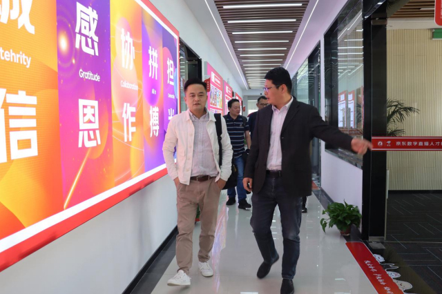在宿迁中等专业学校电商学院张举院长带领下,姚主任一行参观了宿迁中专的京东电商双创实践基地。姚主任对该校电子商务双创实践基地建设及运营情况表示了高度赞赏。
