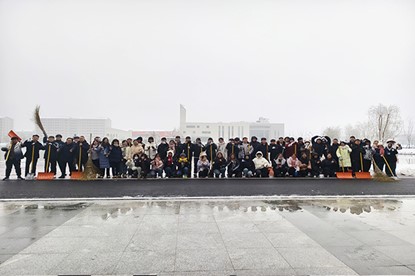12月19日清晨,信息工程系的“团团们”在党员老师的带领下早早地来到弘德楼库房,拿起扫帚、铁锹等工具,准备开展清扫活动。在系领导的带领下,师生们齐心协力,迎着寒风,开始清扫积雪。他们先将积雪堆积在路边的雪堆上,避免影响道路通行。然后,用铁锹将雪块铲除,再用扫帚将路面的冰块扫除。在师生的共同努力下,原本被大雪覆盖的道路逐渐变得清晰起来。