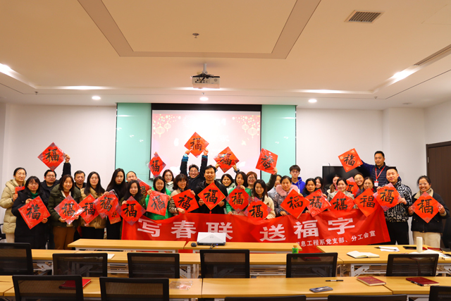 为了进一步弘扬中华优秀传统文化,营造浓厚的节日氛围,学校工会与信息工程系分工会于2024年1月2日共同策划了一场别开生面的写春联、送“福”字活动。