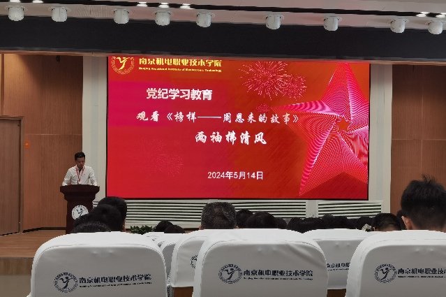 5月14日,江南网页版党委根据《在党员干部中开展党纪学习教育的工作方案》的要求,组织全校党员集中观看大型文献纪录片《榜样--周恩来的故事》的第五集《两袖拂清风》,信息工程系党支部全体党员参加学习。