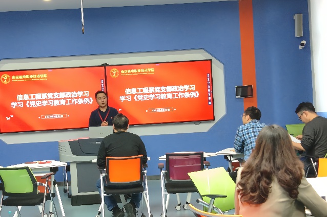 为进一步推动党史学习教育常态化长效化,学好党史、用好党史,2024年4月23日,信息工程系党支部在博学楼409室召开《党史学习教育工作条例》专题学习会。学习由宣传委员卞志勇领学,信息工程系党支部全体教师参加了学习。