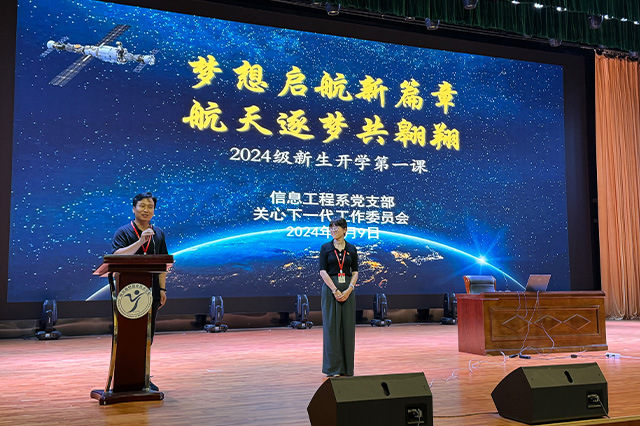 金秋九月,信息工程系迎来了新一届的莘莘学子,共同开启了探索科技奥秘、逐梦星辰大海的新篇章。9月9日,信息工程系在青春剧场举办新生开学第一课,信息工程系主任王国珍、党支部书记胡枫、学工干事、关心下一代工作委员会秘书长郝麒、全体新生辅导员以及24级新生共同参加,同时本次大会还特别邀请了全球职业规划师暖阳老师、反诈宣讲团徐柯老师为大一新生开展新生开学第一课。