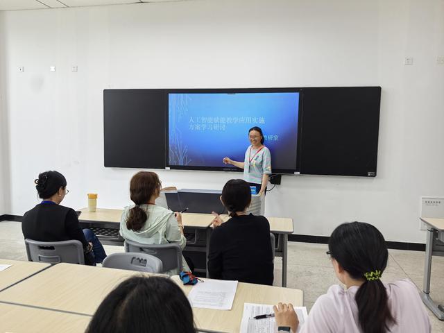 教研室主任荀丽丹详细介绍了此次学习研讨的背景与目标,强调人工智能对教育领域带来的巨大变革潜力,鼓励教师们积极探索其在软件教学中的创新应用。随后,屈会雪分享了自己对人工智能赋能教学实施方案的深入解读,通过具体案例展示了如何利用 AI 工具优化课程设计、丰富教学资源以及实现个性化教学。