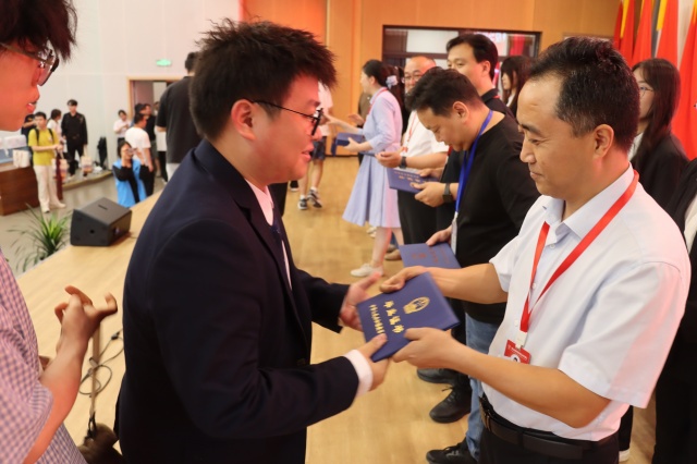 在颁发毕业证书的环节中,学校党委委员、副校长赵学洪及系部领导班子亲自上台,为即将步入社会的学子们颁发这一象征着荣誉与责任的证书。毕业生们依次上台,从老师们手中接过属于自己的毕业证书,脸上洋溢着幸福的笑容和自豪的神情,这不仅是对学业成果的认可,更象征着“匠心精神”的代际传递。